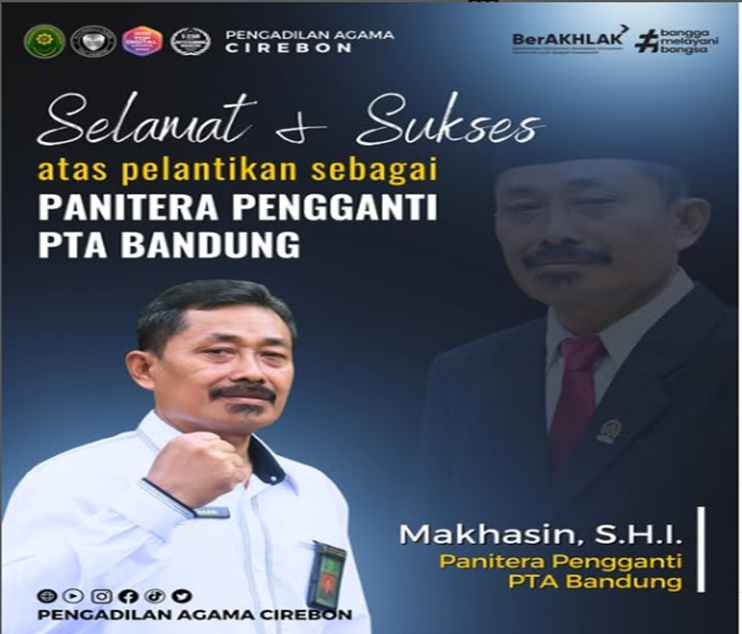 Selamat & Sukses atas pelantikan Makhasin, S.H.I sebagai panitera Pengganti Pengadilan Tinggi Agama Bandung.